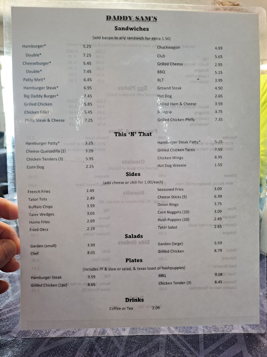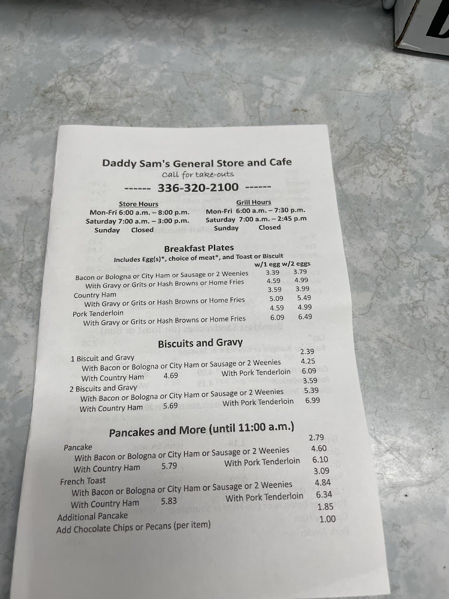 At Daddy Sam's Menu, you’ll find a delightful mix of hearty dishes perfect for any appetite. Nestled in the peaceful surroundings of Lowgap, North Carolina, Daddy Sam’s offers a menu that brings comfort food to the forefront, making it an ideal spot to relax and enjoy some delicious, home-style cooking. From tender meats to savory sides, every dish is crafted with care and flavor, ensuring each bite is as satisfying as the last. Whether you’re in the mood for a juicy steak, some fresh, grilled veggies, or a sweet treat to round off your meal, Daddy Sam’s has something to please everyone. The warm, welcoming atmosphere makes it the perfect place to indulge in good food and even better company.